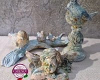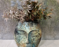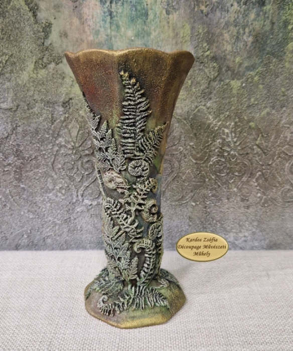 Technikák: egyedi rizspapírral készült dekoráció kerámiafelületen. Kombinált árnyalási technikák rusty patinával, akril és metálfestékekkel, antikoló púderrel. A kompozícióhoz flexibilis pasztából készült 3 D-s növényi dekorációkat használunk, melyet összehangolunk a pittorico kompizícióval.