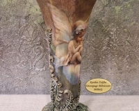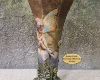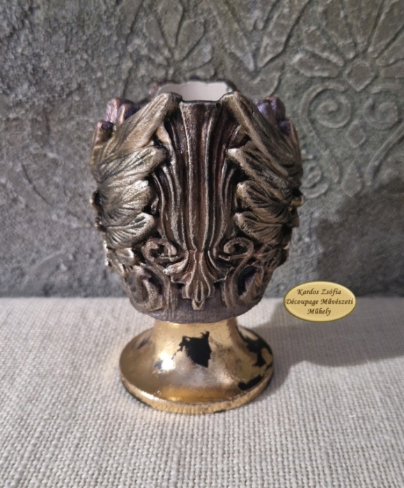 Technikák: dekoráció különböző metál és színváltó festékekkel, aranyozás füstfóliával