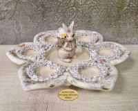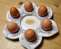 Virágszirom alakú különleges talpas tál, 6 tojástartó hellyel.