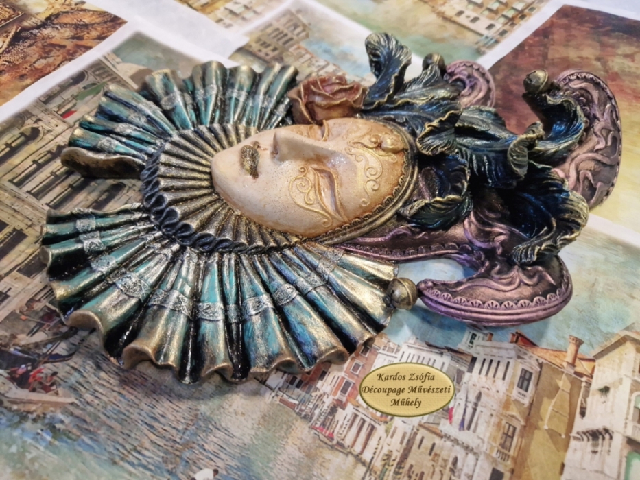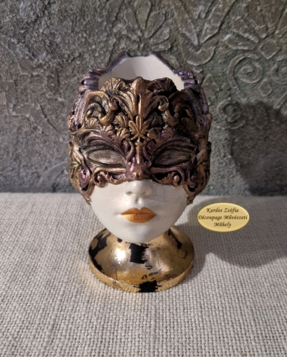 1.,Velencei maszkos fejet formázó műgyanta tároló dekorációja
