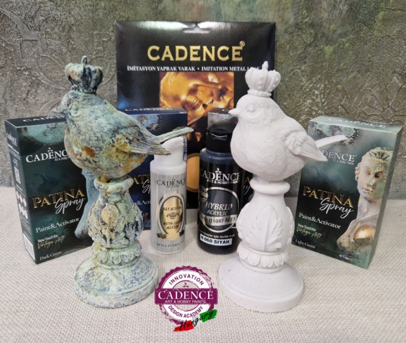 3.,Műgyanta tárgy dekorációja Cadence patina sprayvel