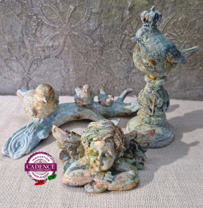 Technikák: a figura festése, színezése, antikolása különböző Cadence festékekkel és antikoló termékekkel