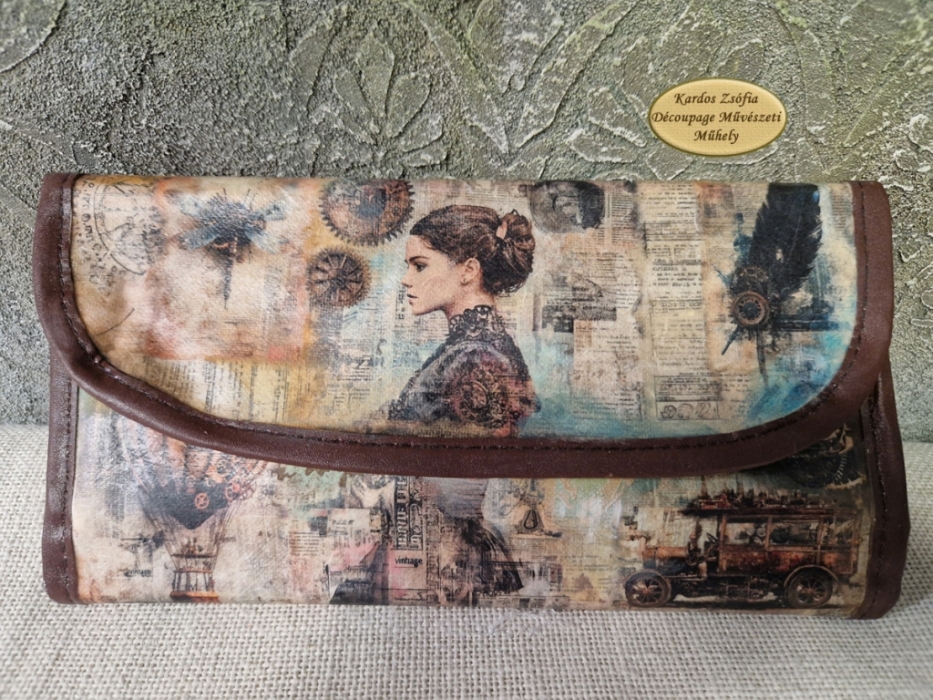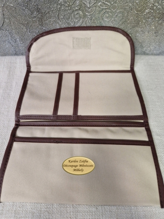 36 x 25 cm-s, vintage stílusú,összehajható, tépőzárral záródó irattartó, utazási dokumentumokhoz, 4 különböző méretű belső zsebbel.