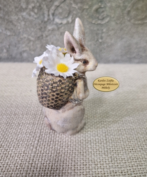 Alapanyaga : 9 cm-s kerámiatojás, műgyanta öntvény kerámiavirág talppal, teljes magasság tojással 14 cm, szélesség 8 cm