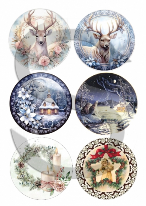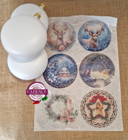 3 db-s medalion díszcsomag, „Karácsonyi gömbök Nr.12” rizspapírral