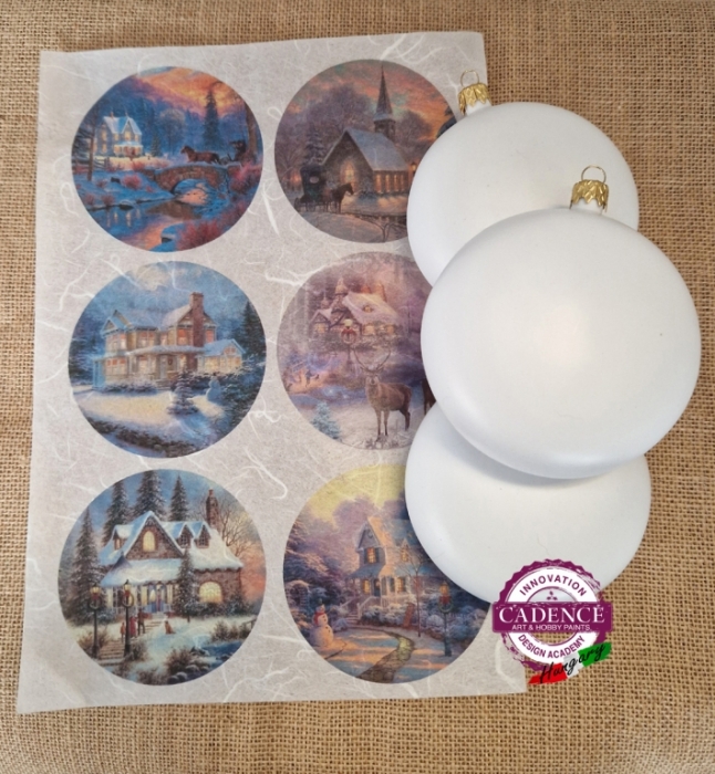3 db-s medalion díszcsomag, „Karácsonyi gömbök Nr.9" rizspapírral