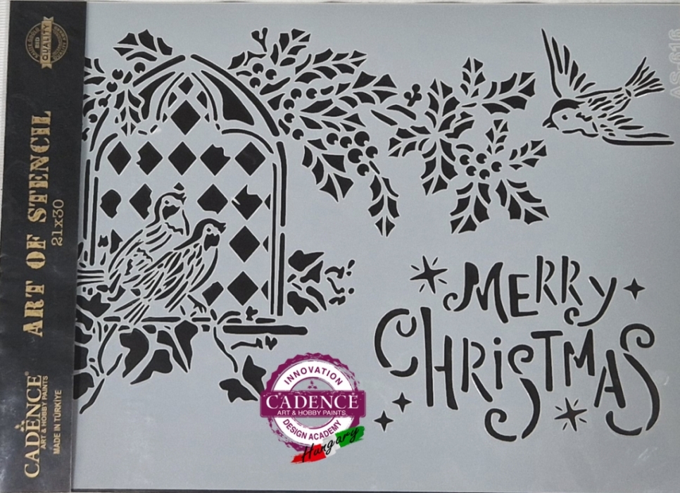 Prémium minőségű műanyagból készült design stencil, bármilyen felülethez, többszöri használatra. Hasznáható bármilyen festékhez, stencilkrémekhez, pasztákhoz. A festék vagy paszta felkenése után, amely történhet stencilecsettel vagy spatulával, azonnal távolítsuk el a stencilt a felületről. Utána meleg, mosogatószeres vízzel tisztítsuk meg a stencilt és a következő használat előtt hagyjuk megszáradni. A stencil felhelyezése előtt a stencilt mindig fújjuk le Cadence Stencil Sprayvel, hogy pontosan tudjuk a felületen rögzíteni a sablont, precíz legyen a lenyomat, festék megfolyás nélkül. Figyelem! A stencilek méretétől és mennyiségétől függően a szállítási díj változhat.