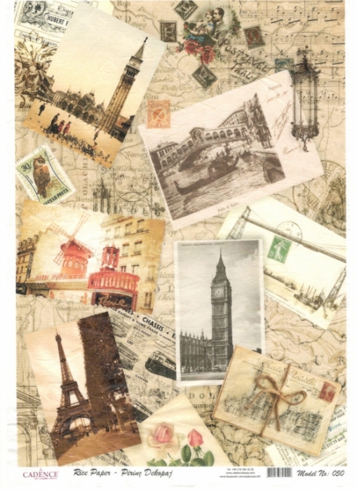 A3-s méretű rizspapír, découpage technikához. Felragasztásához a Découpage Plus ragasztót használd, a kész munkát vízbázisú akril lakkal védd le.