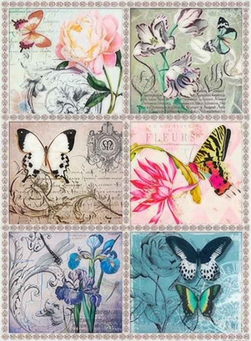 A3-s méretű rizspapír, découpage technikához. Felragasztásához a Découpage Plus ragasztót használd, a kész munkát vízbázisú akril lakkal védd le.