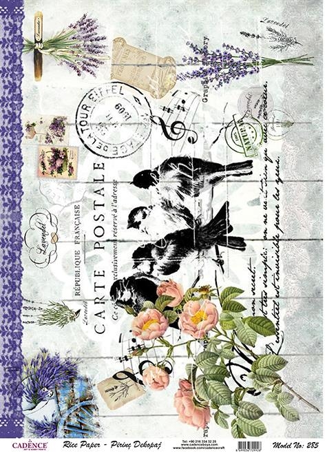 A3-s méretű rizspapír, découpage technikához. Felragasztásához a Découpage Plus ragasztót használd, a kész munkát vízbázisú akril lakkal védd le.