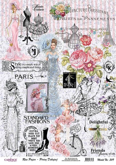 A3-s méretű rizspapír, découpage technikához. Felragasztásához a Découpage Plus ragasztót használd, a kész munkát vízbázisú akril lakkal védd le.
