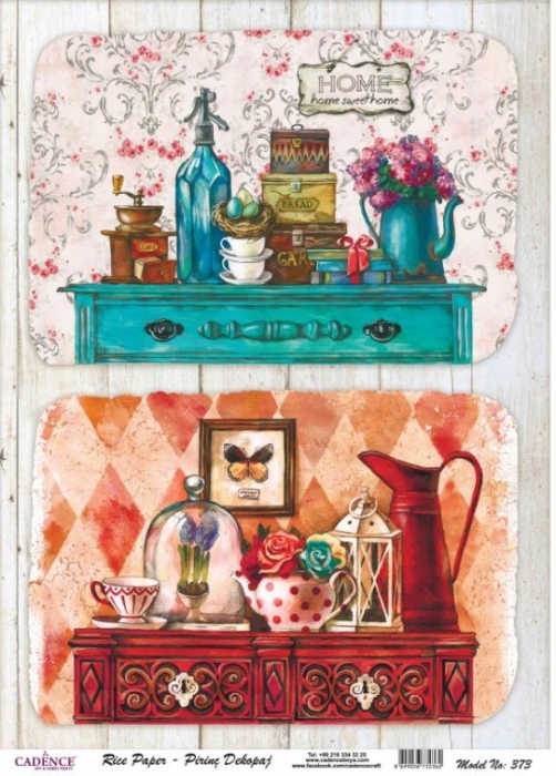A3-s méretű rizspapír, découpage technikához. Felragasztásához a Découpage Plus ragasztót használd, a kész munkát vízbázisú akril lakkal védd le.