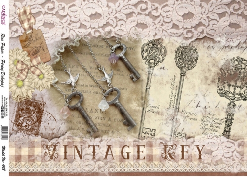 A3-s méretű rizspapír, découpage technikához. Felragasztásához a Découpage Plus ragasztót használd, a kész munkát vízbázisú akril lakkal védd le.
