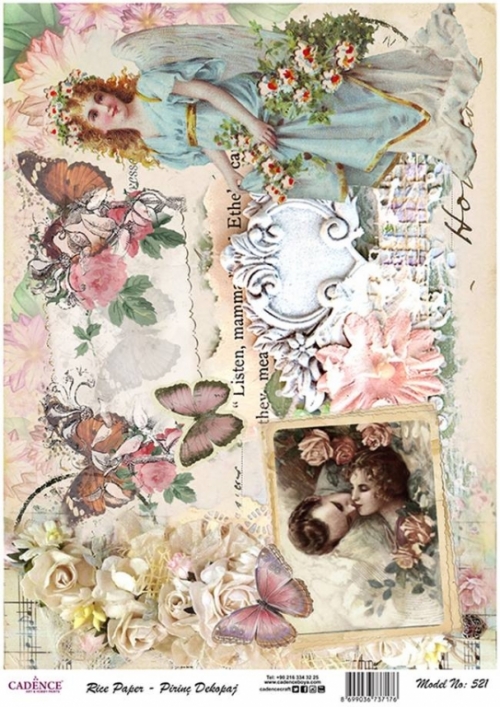 A3-s méretű rizspapír, découpage technikához. Felragasztásához a Découpage Plus ragasztót használd, a kész munkát vízbázisú akril lakkal védd le.