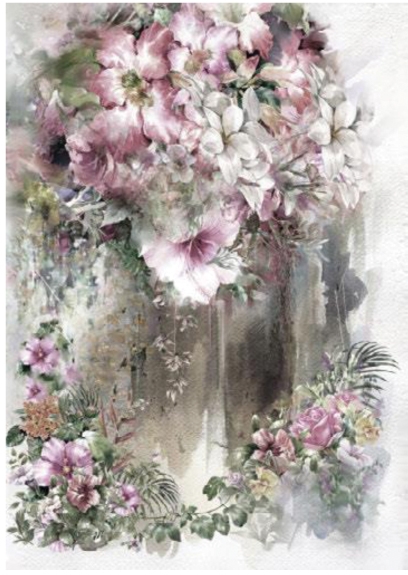 A3-s méretű rizspapír, découpage technikához. Felragasztásához a Découpage Plus ragasztót használd, a kész munkát vízbázisú akril lakkal védd le.