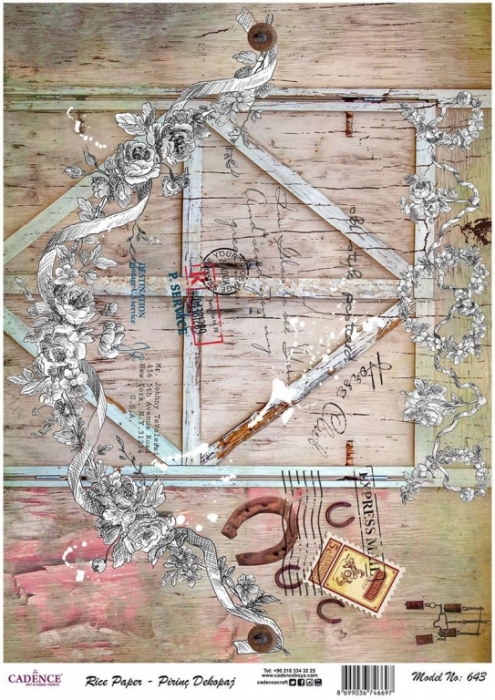 A3-s méretű rizspapír, découpage technikához. Felragasztásához a Découpage Plus ragasztót használd, a kész munkát vízbázisú akril lakkal védd le.