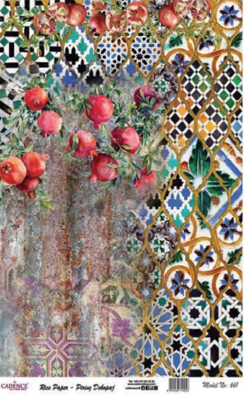 A3-s méretű rizspapír, découpage technikához. Felragasztásához a Découpage Plus ragasztót használd, a kész munkát vízbázisú akril lakkal védd le.