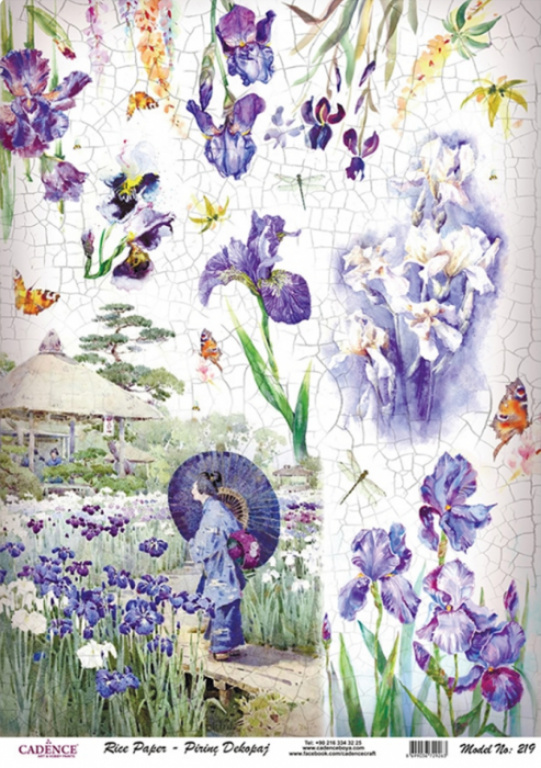 A4-s méretű rizspapír, découpage technikához. Felragasztásához a Découpage Plus ragasztót használd, a kész munkát vízbázisú akril lakkal védd le.