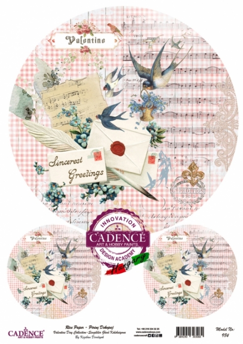 A4-s méretű rizspapír, découpage technikához. Felragasztásához a Découpage Plus ragasztót használd, a kész munkát vízbázisú akril lakkal védd le.