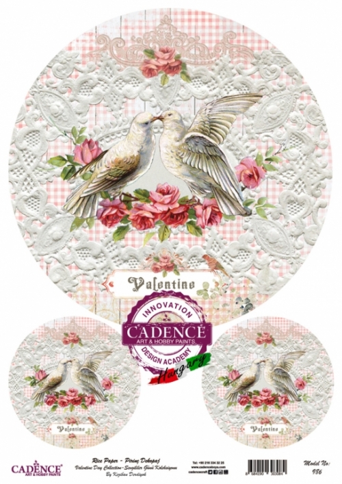 A4-s méretű rizspapír, découpage technikához. Felragasztásához a Découpage Plus ragasztót használd, a kész munkát vízbázisú akril lakkal védd le.