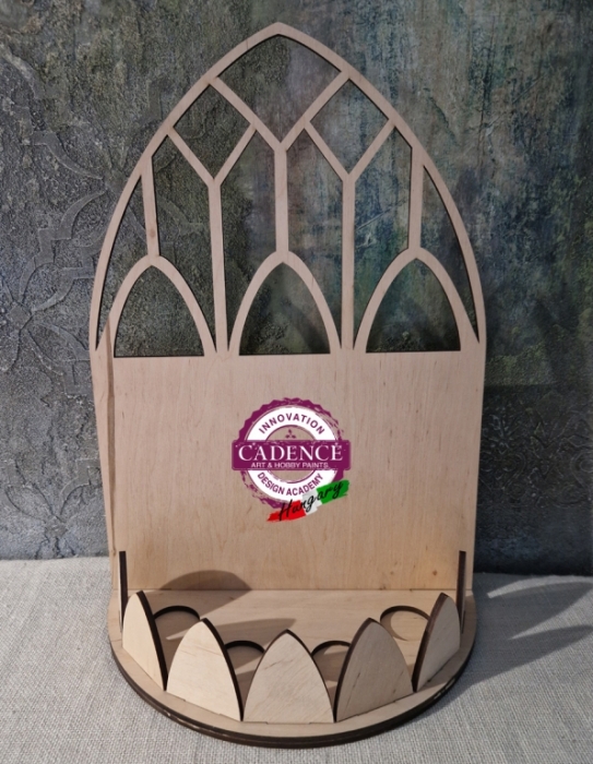 Lézervágott, két részből álló ádventi lakásdísz, íves mécsestartóval, mix media dekorációkhoz. Mérete: hosszúság 30 cm, szélesség, 17 cm, magasság 43 cm