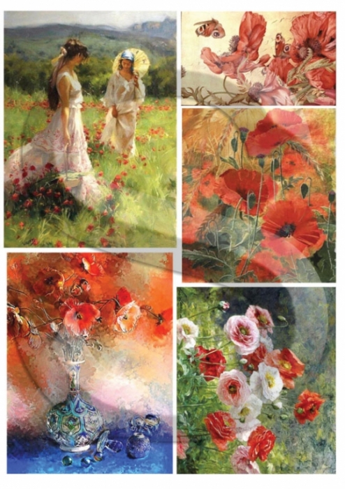 A4-s méretű, 20 gr-s rizspapírra készült, egyedi tervezésű és nyomtatású rizspapírok, découpage technikához. Felragasztásához a Découpage Plus ragasztót használd, a kész munkát vízbázisú akril lakkal védd le.