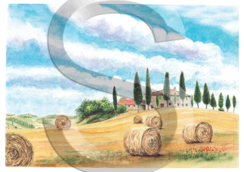Akvarell sorozat – Toszkán tájak 1., A4-s méretű rizspapír