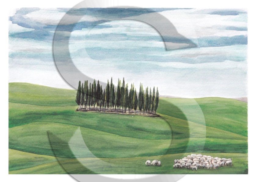 Akvarell sorozat – Toszkán tájak 10., A4-s méretű rizspapír