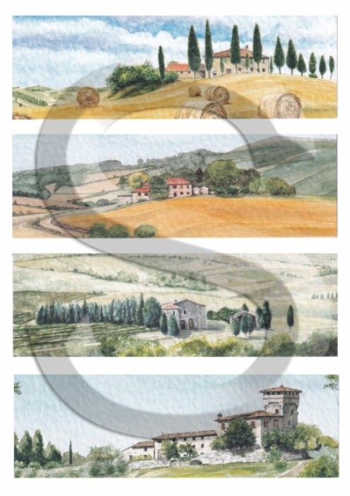 Akvarell sorozat – Toszkán tájak 11., A4-s méretű rizspapír