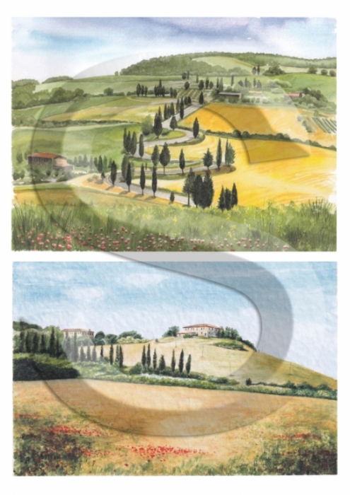 Akvarell sorozat – Toszkán tájak 14., A4-s méretű rizspapír