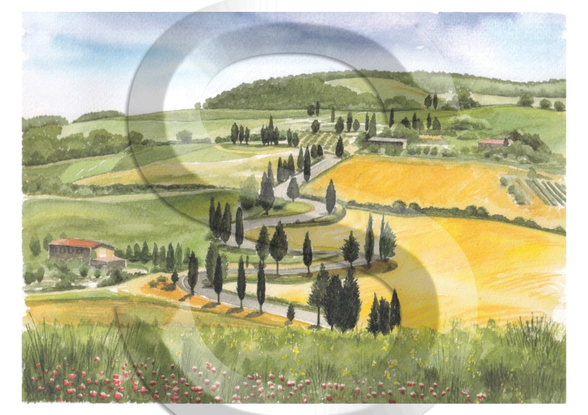 Akvarell sorozat – Toszkán tájak 3., A4-s méretű rizspapír
