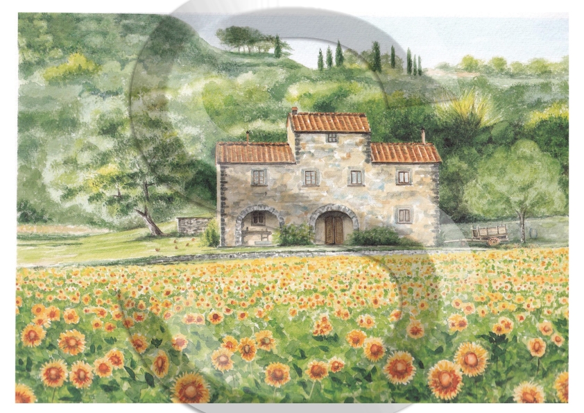Akvarell sorozat – Toszkán tájak 4., A4-s méretű rizspapír