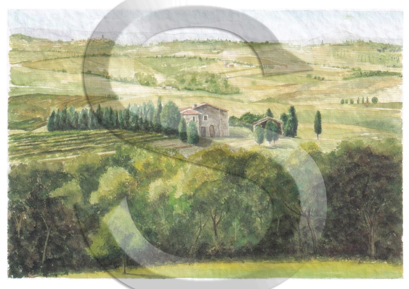 Akvarell sorozat – Toszkán tájak 8., A4-s méretű rizspapír