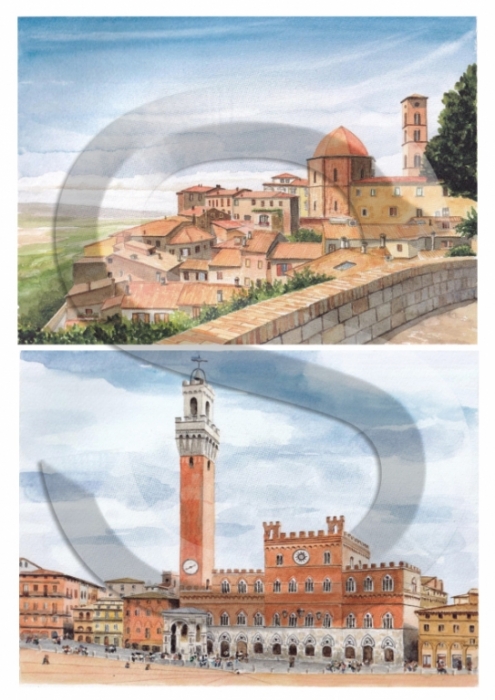 Akvarell sorozat – Toszkán városok 9., A4-s méretű rizspapír