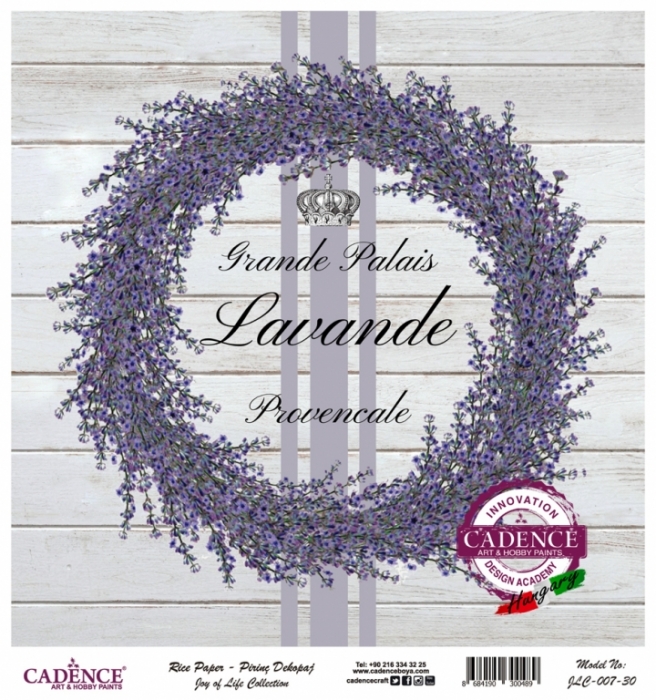 32 x 32 cm méretű rizspapír, découpage technikához. Felragasztásához a Découpage Plus ragasztót használd, a kész munkát vízbázisú akril lakkal védd le.