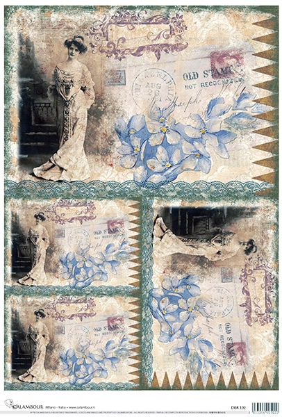 A3-s méretű rizspapír, découpage technikához. Felragasztásához a Découpage Plus ragasztót használd, a kész munkát vízbázisú akril lakkal védd le.