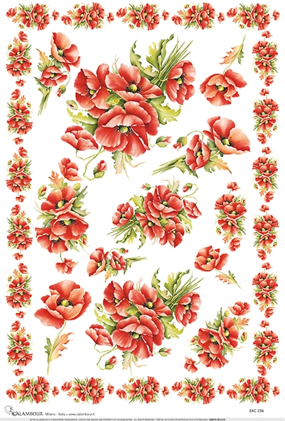 A3-s méretű rizspapír, découpage technikához. Felragasztásához a Découpage Plus ragasztót használd, a kész munkát vízbázisú akril lakkal védd le.