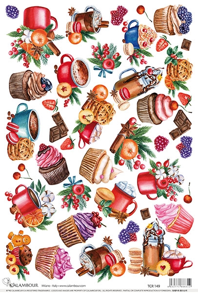 A3-s méretű rizspapír, découpage technikához. Felragasztásához a Découpage Plus ragasztót használd, a kész munkát vízbázisú akril lakkal védd le.