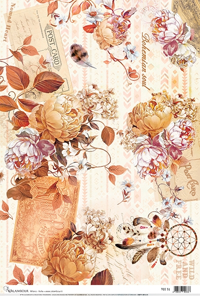 A3-s méretű rizspapír, découpage technikához. Felragasztásához a Découpage Plus ragasztót használd, a kész munkát vízbázisú akril lakkal védd le.