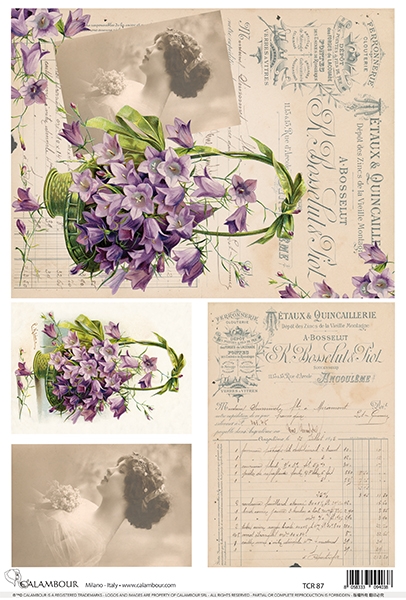 A3-s méretű rizspapír, découpage technikához. Felragasztásához a Découpage Plus ragasztót használd, a kész munkát vízbázisú akril lakkal védd le.