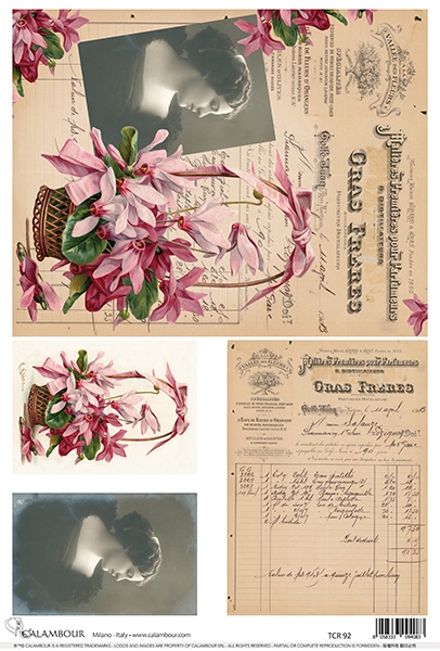 A3-s méretű rizspapír, découpage technikához. Felragasztásához a Découpage Plus ragasztót használd, a kész munkát vízbázisú akril lakkal védd le.