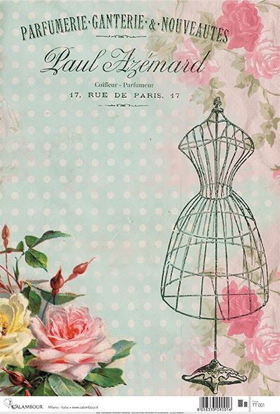 A4-s méretű rizspapír, découpage technikához. Felragasztásához a Découpage Plus ragasztót használd, a kész munkát vízbázisú akril lakkal védd le.