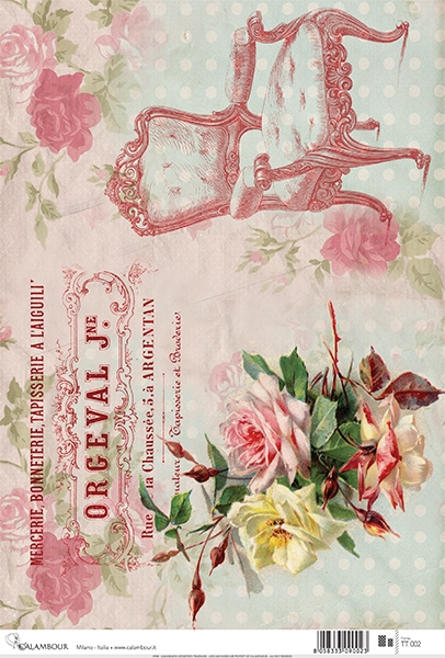 A4-s méretű rizspapír, découpage technikához. Felragasztásához a Découpage Plus ragasztót használd, a kész munkát vízbázisú akril lakkal védd le.