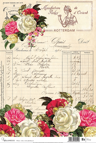 A4-s méretű rizspapír, découpage technikához. Felragasztásához a Découpage Plus ragasztót használd, a kész munkát vízbázisú akril lakkal védd le.