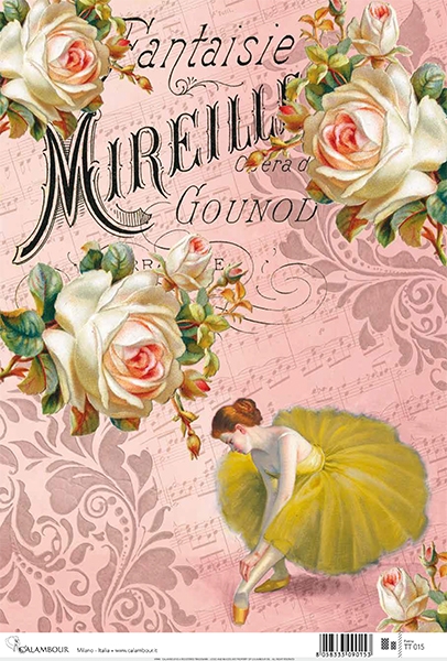 A4-s méretű rizspapír, découpage technikához. Felragasztásához a Découpage Plus ragasztót használd, a kész munkát vízbázisú akril lakkal védd le.