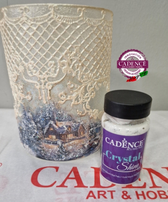 A CRYSTAL SHINE álomszép, csillogó, filigrán hó- és jéghatást biztosít különböző felületeken. Vízbázisú, hófehér, finom szemcséjű pasztája kenhető, festhető, vagy sablonnal felvihető. A paszta ragyogó hologram csillámokat tartalmaz, felvihető spatulával vagy ecsettel. Szükség esetén több réteg is felhordható a különböző hatások érdekében. Száradás után ellenáll az időjárás viszontagságainak. Használat előtt alaposan keverje össze. A használt eszközök vízzel és szappannal tisztíthatók. Használat után csavarja vissza precízen a fedelet, és tárolja hőtől távol. A száradási idő 1-6 óra, az alkalmazás vastagságától függően. Nem tartalmaz káros mérgező anyagokat és megfelel a CE & EN 71 szabványoknak.