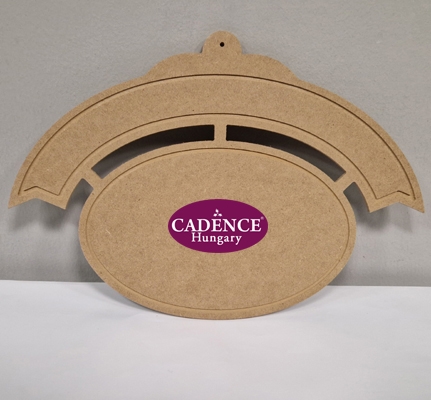 Felakasztható díszpanel. Alapanyaga MDF. Méretei: teljes magasság 27 cm, szélesség 38 cm, az ovállap méretei magasság 17,5 cm, szélesség 26 cm