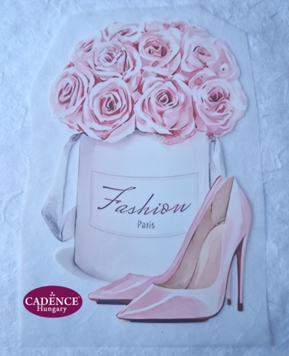 Egyedi textil transzfer – Cipő és rózsák, 6 x 8 cm
