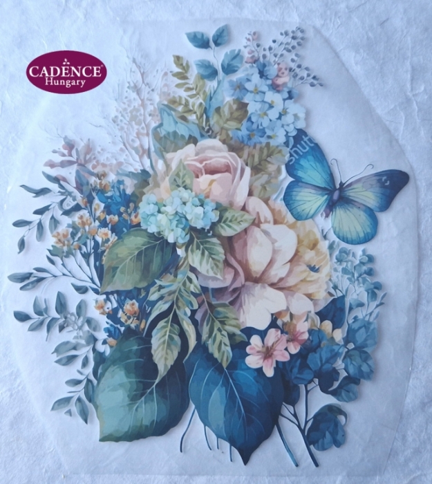 Egyedi textil transzfer – Tarka virágcsokor pillangóval