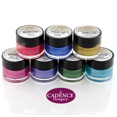 Vízbázisú, nagyon magas metál pigment tartalmú krém, amely bármilyen felületen használható metálos effektek kialakításához. Felvihetjük az ujjunkkal vagy ecsettel, ecsettel finomabb, árnyaltabb hatást érhetünk el. Használhatjuk már lakkozott felületre is, vízállóra és gyorsan szárad. Sokféle színárnyalat, gazdag fényű és csillogású textúra, a színek keverhetők egymással. Az eszközöket langyos, mosószeres vízzel tisztítsuk használat után. Az állásában besűrűsödött metálkrémet feloldhatjuk, lazíthatjuk Cadence glazing médiummal. Mérgező anyagot nem tartalmaz, hitelesítve a EN 71 & CE. által.